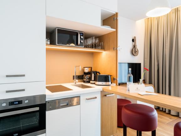 vollausgestattete Küchenzeile, Essecke, Haartrockner