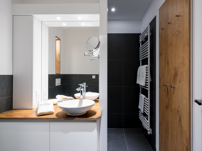 Bad mit Dusche und WC, Sky-TV,, Tresor,