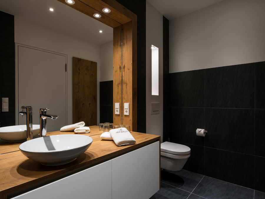 Bad mit Dusche und WC, Sky-TV, Tresor,