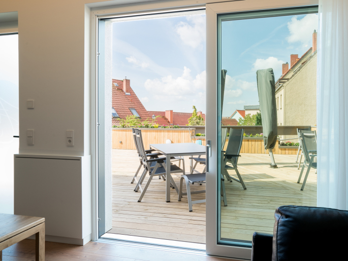 separater Eingang, Lederpolstermöbel, Laminatboden,